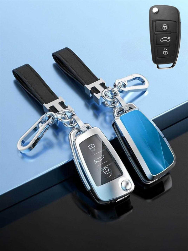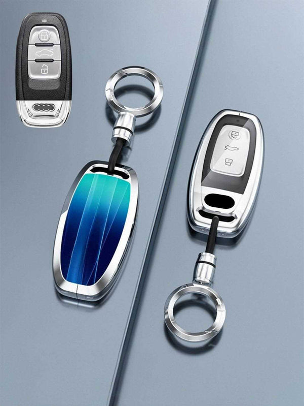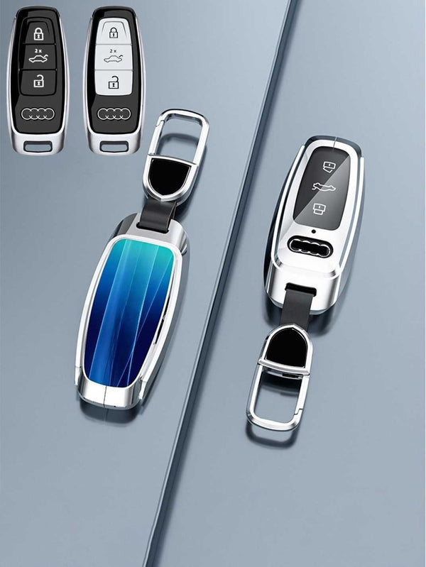 Heavy-Duty Zinc Alloy Audi ...- Type A / Crystal Gloss Key Shell / Silver-Blue with Ring Keychain - $23.97