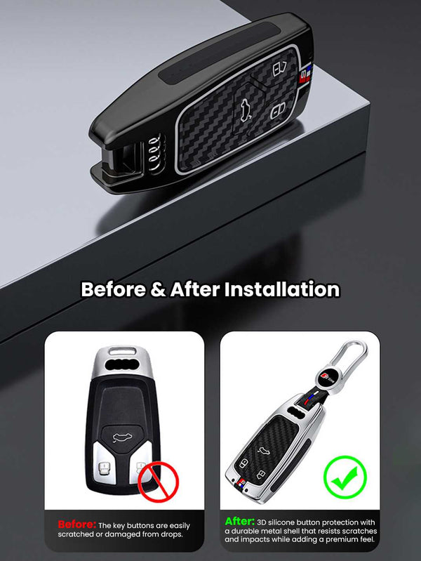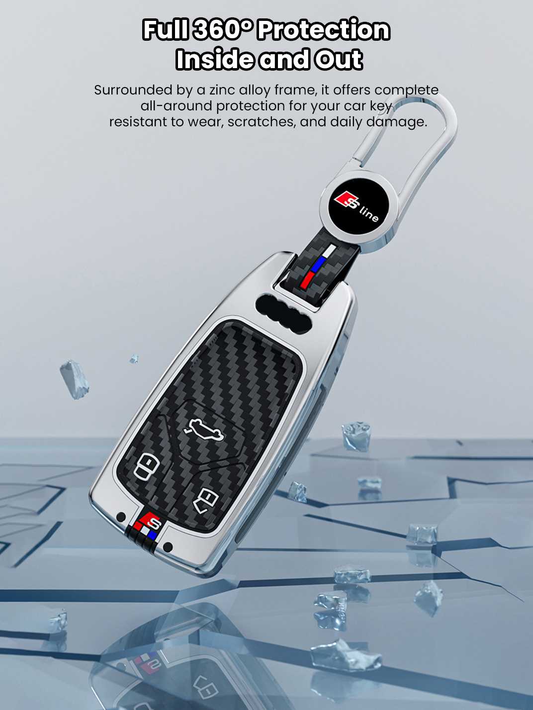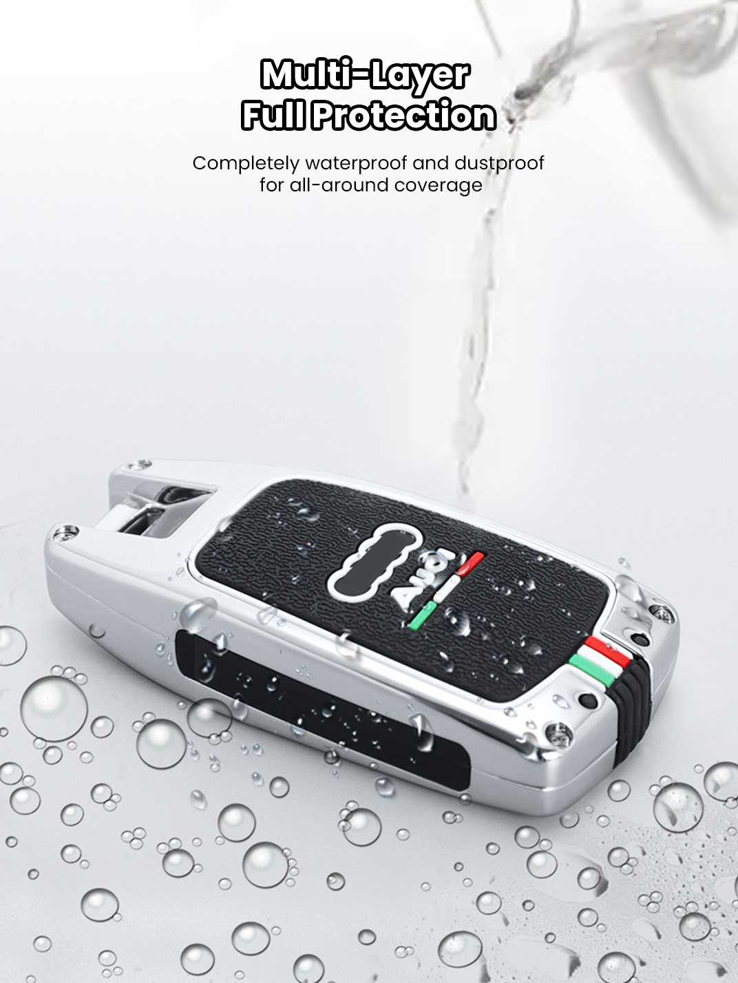 This Audi key cover uses a tightly fitted alloy shell with reinforced edges to shield your key from water splashes, dust, and daily grime. The inner cushioning layer reduces impact and helps maintain the key’s original condition.