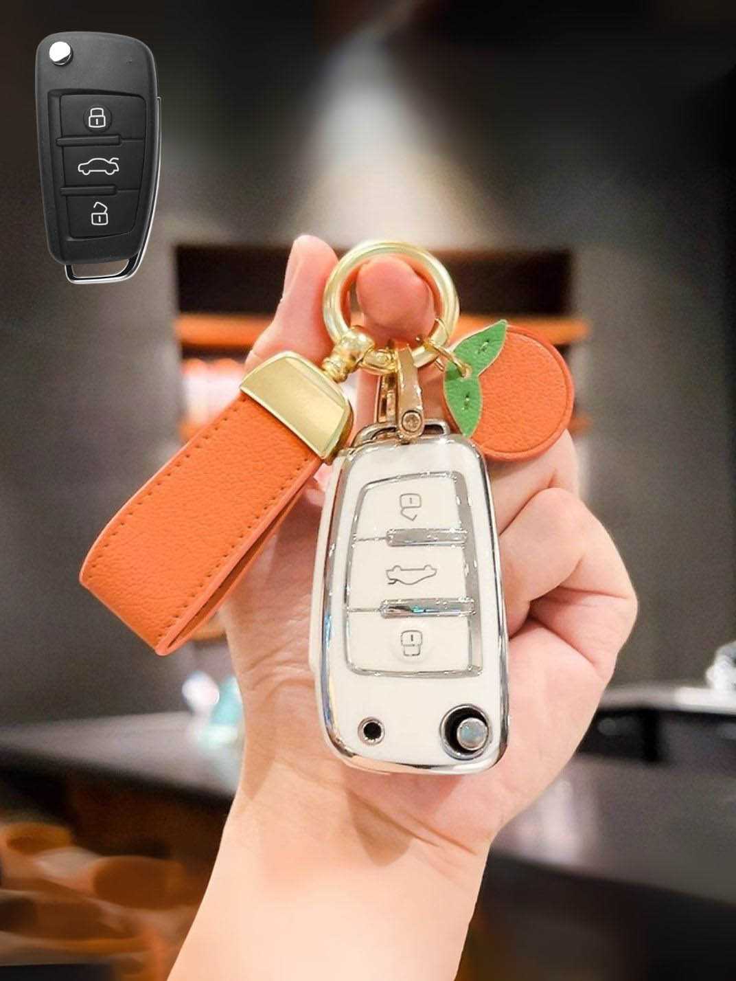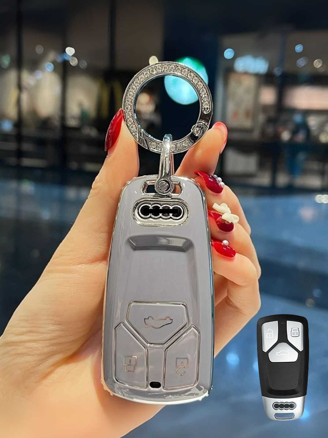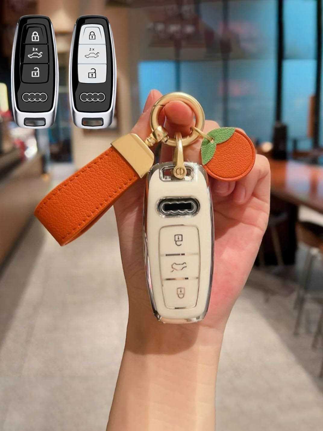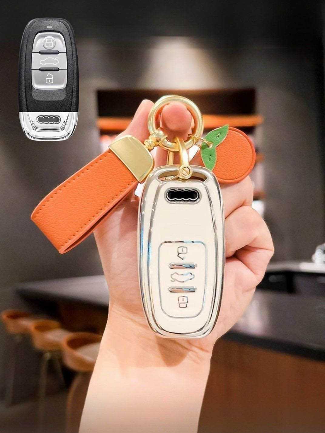 Includes a matching strap or ring clip accessory that improves grip, prevents drops, and makes your Audi key easier and more comfortable to carry every day.