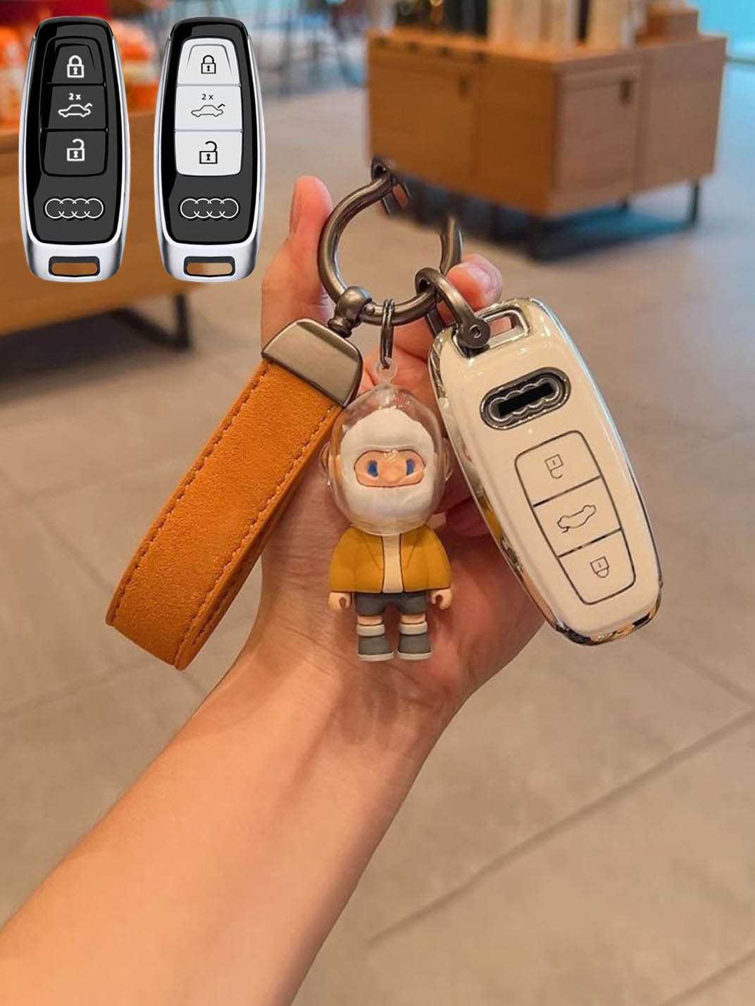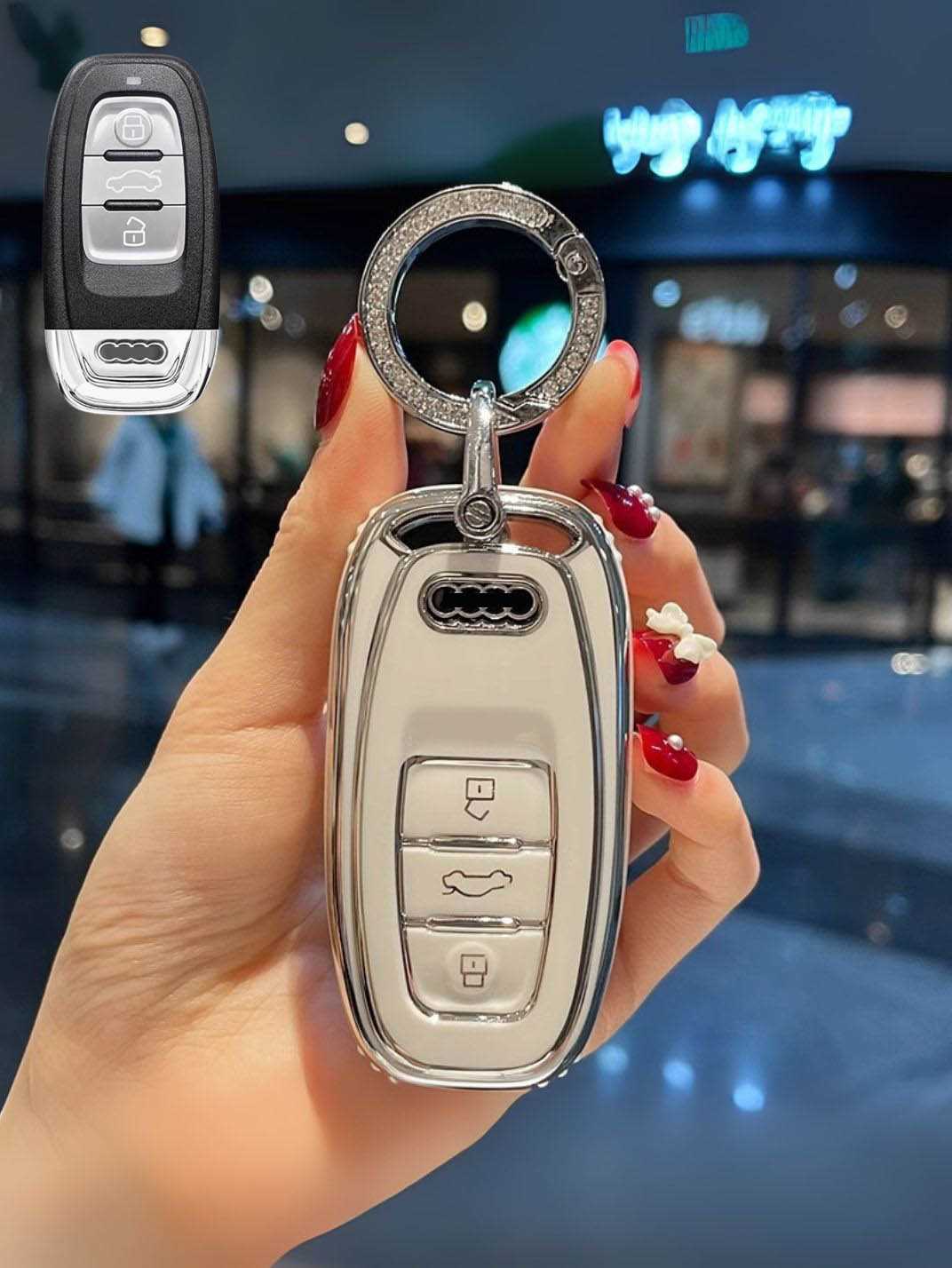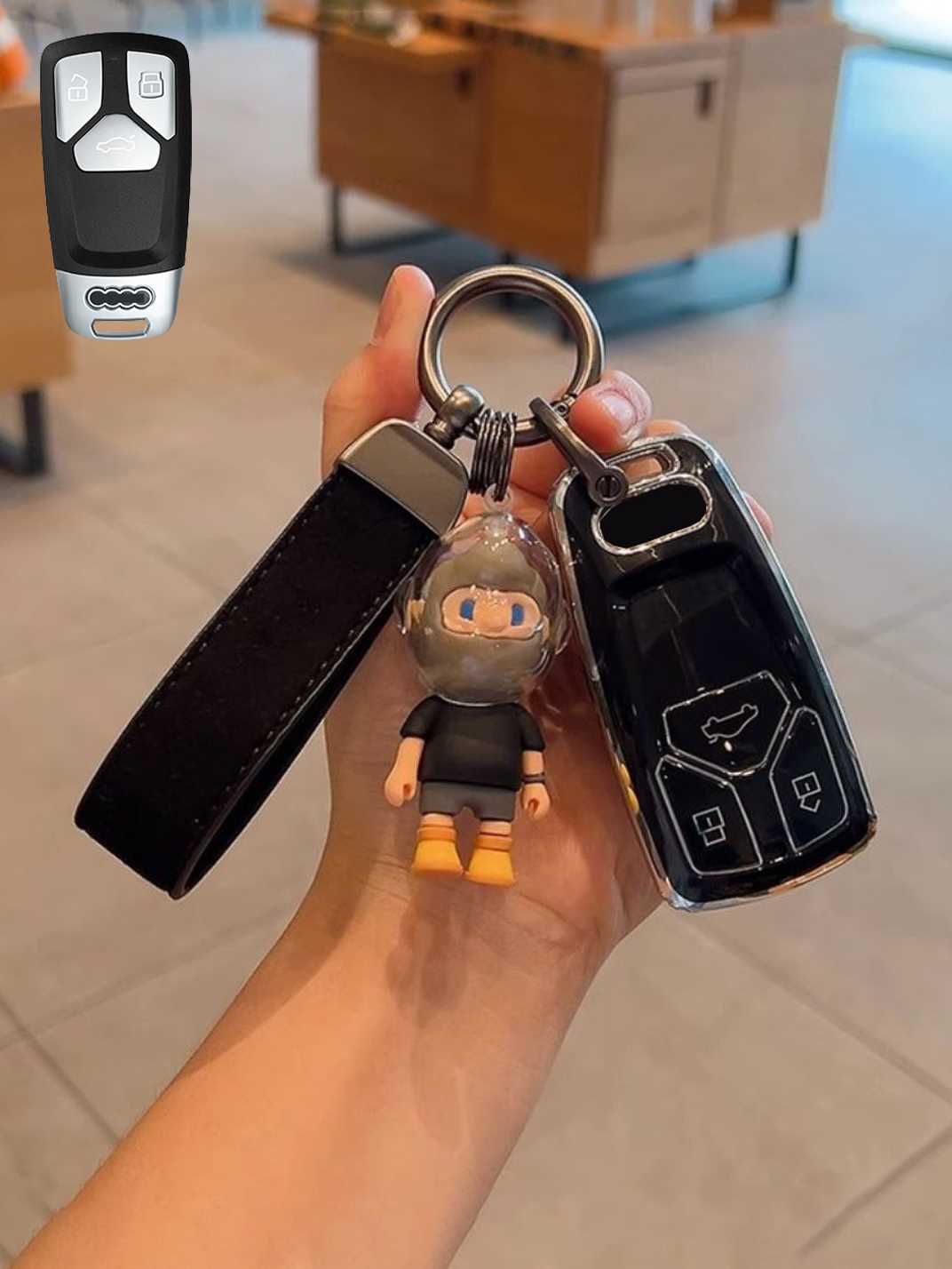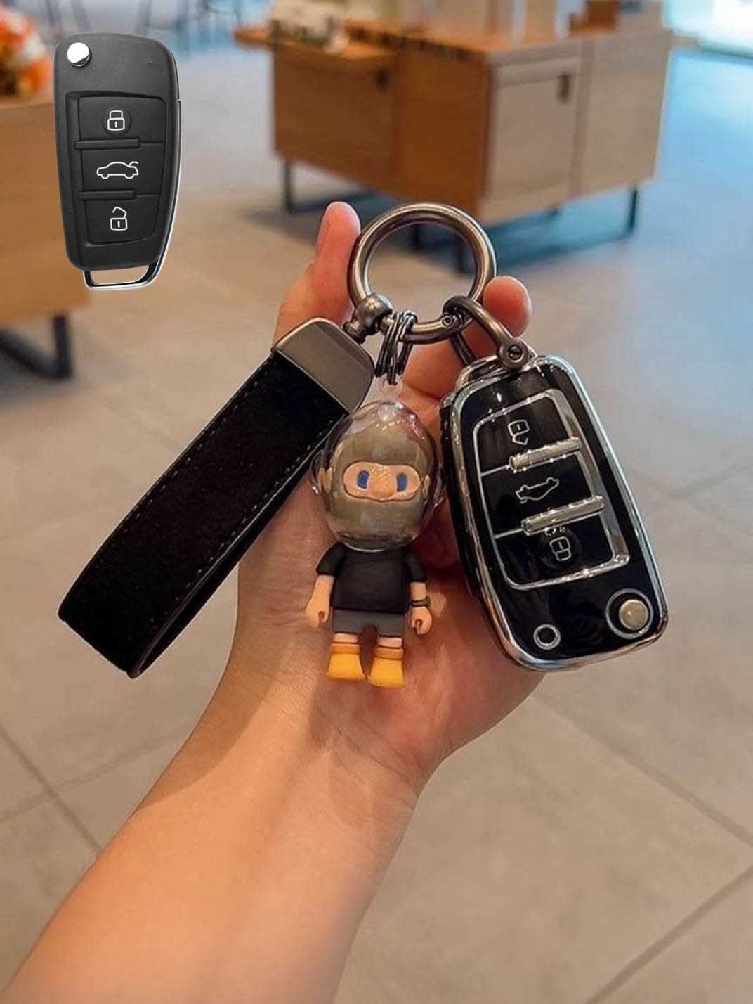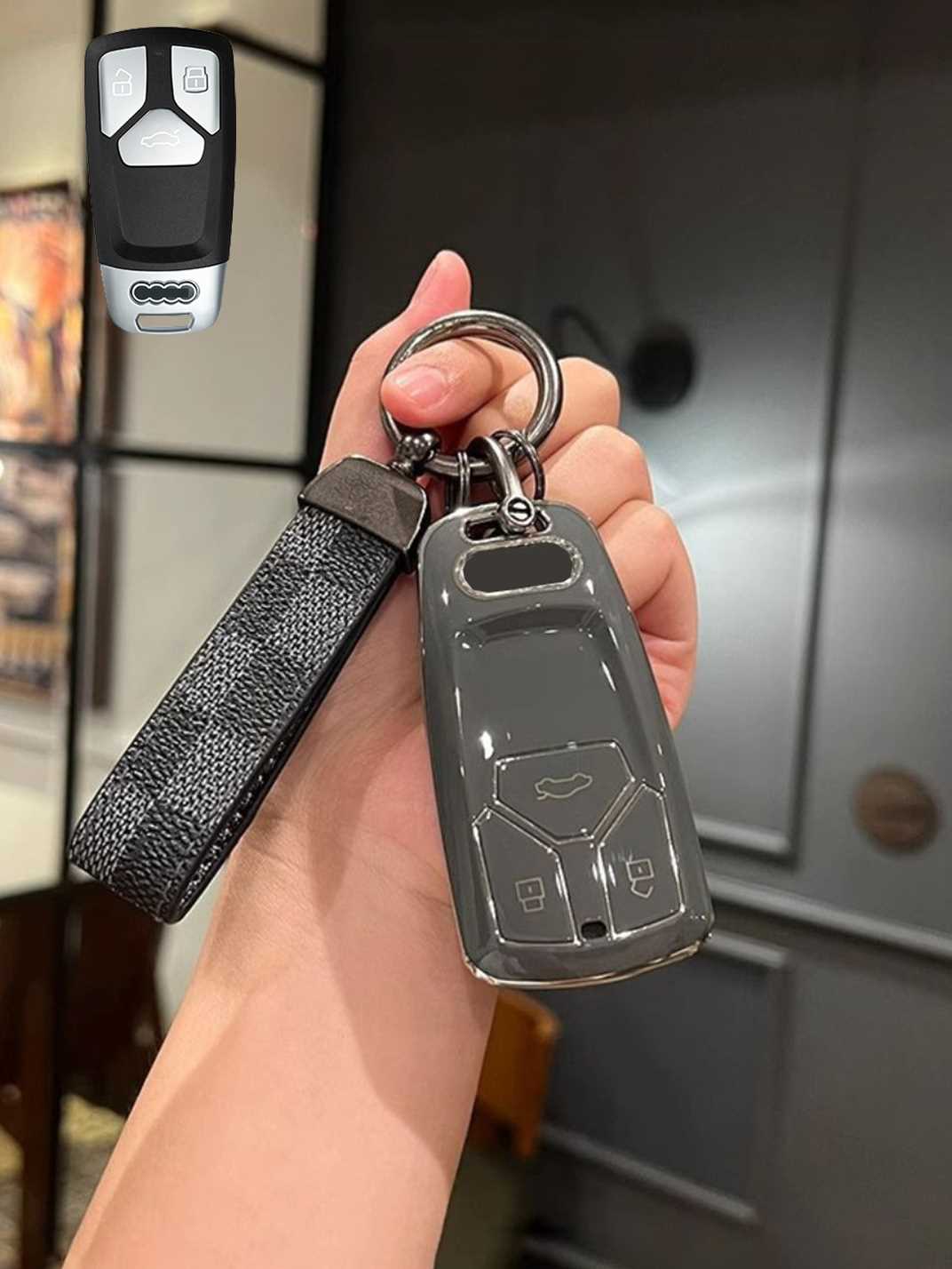 Includes a matching strap or ring clip accessory that improves grip, prevents drops, and makes your Audi key easier and more comfortable to carry every day.
