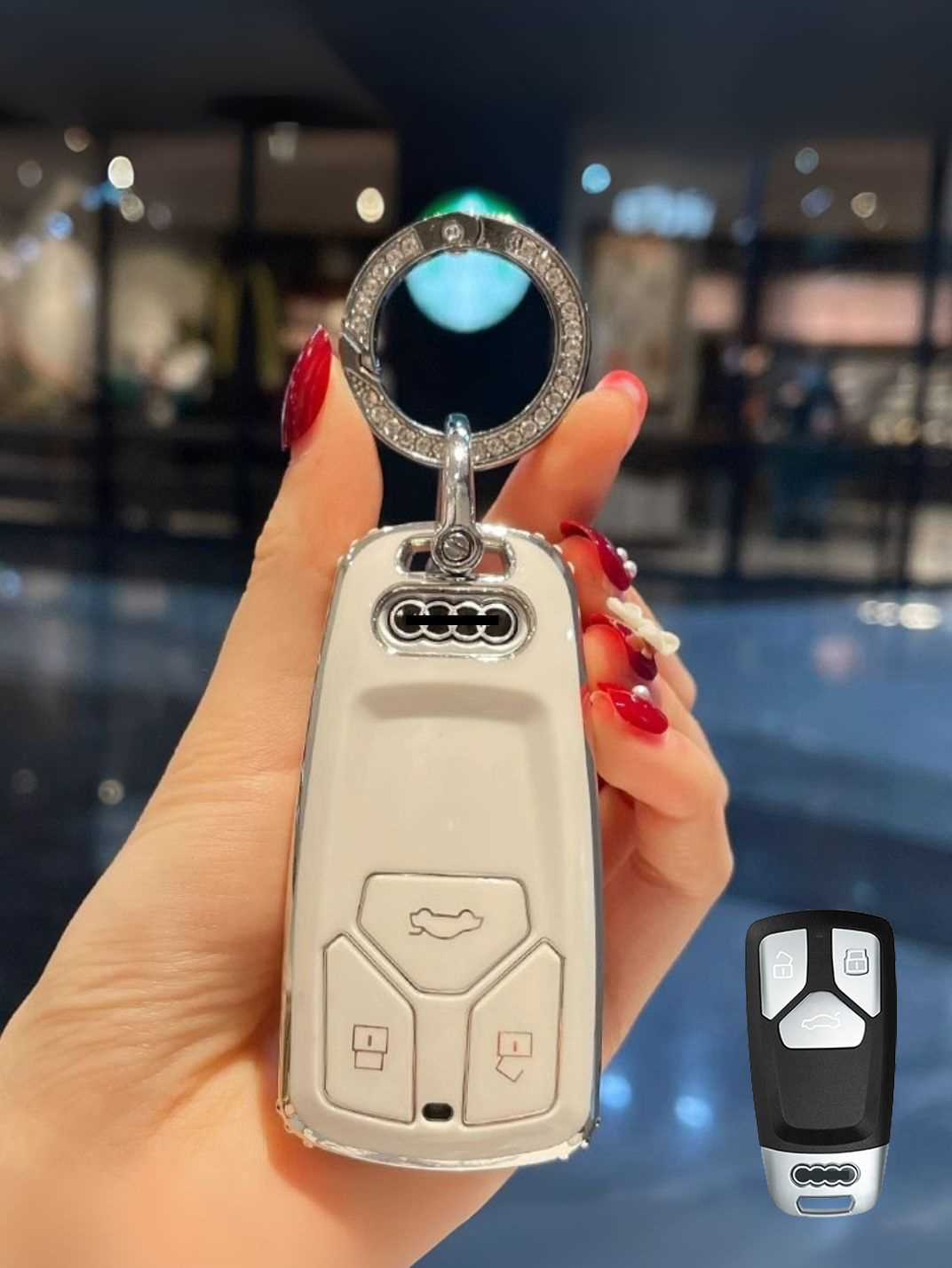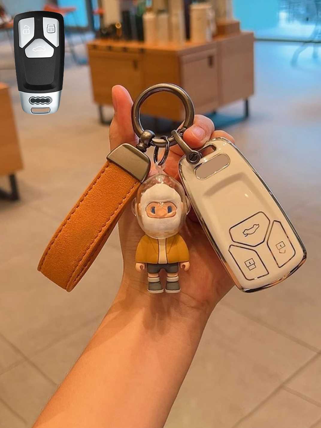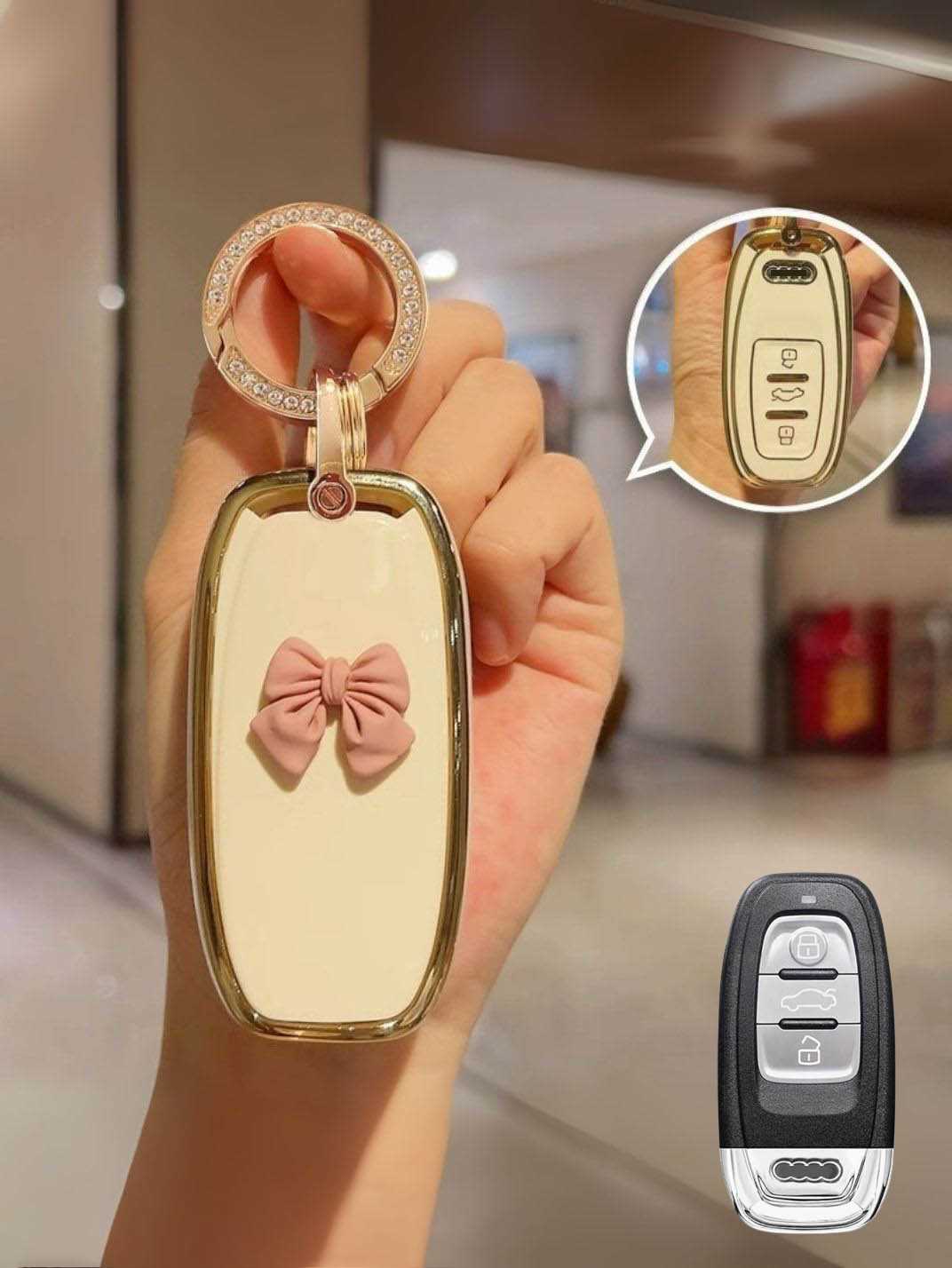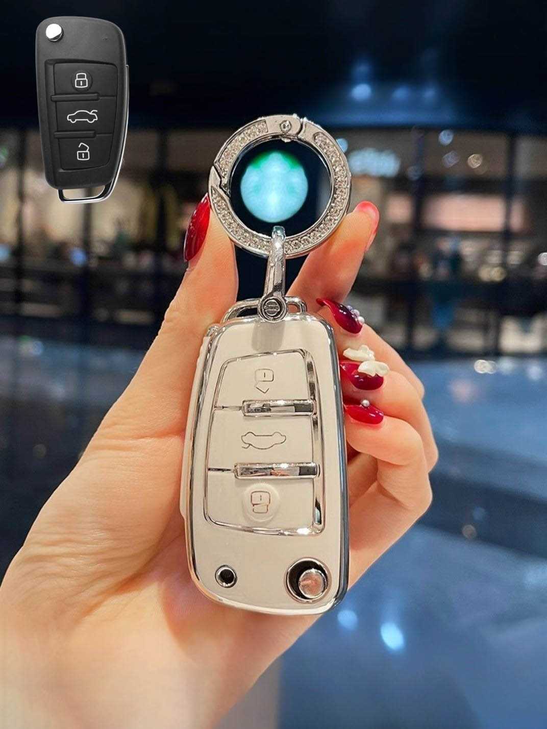 Includes a matching strap or ring clip accessory that improves grip, prevents drops, and makes your Audi key easier and more comfortable to carry every day.
