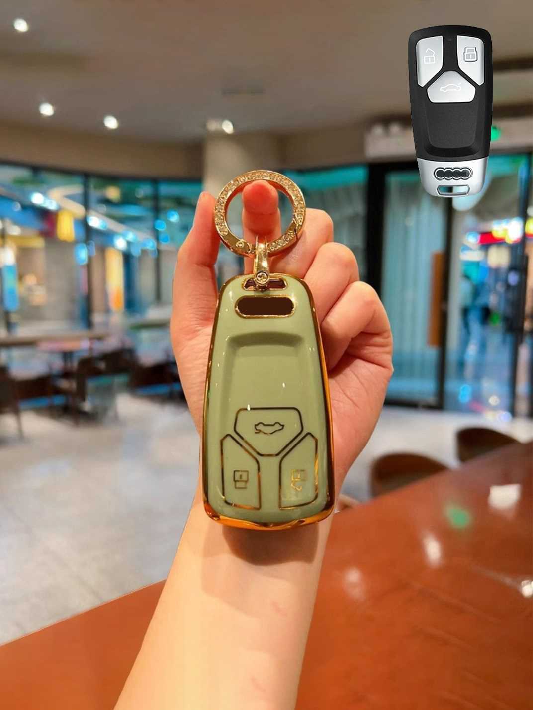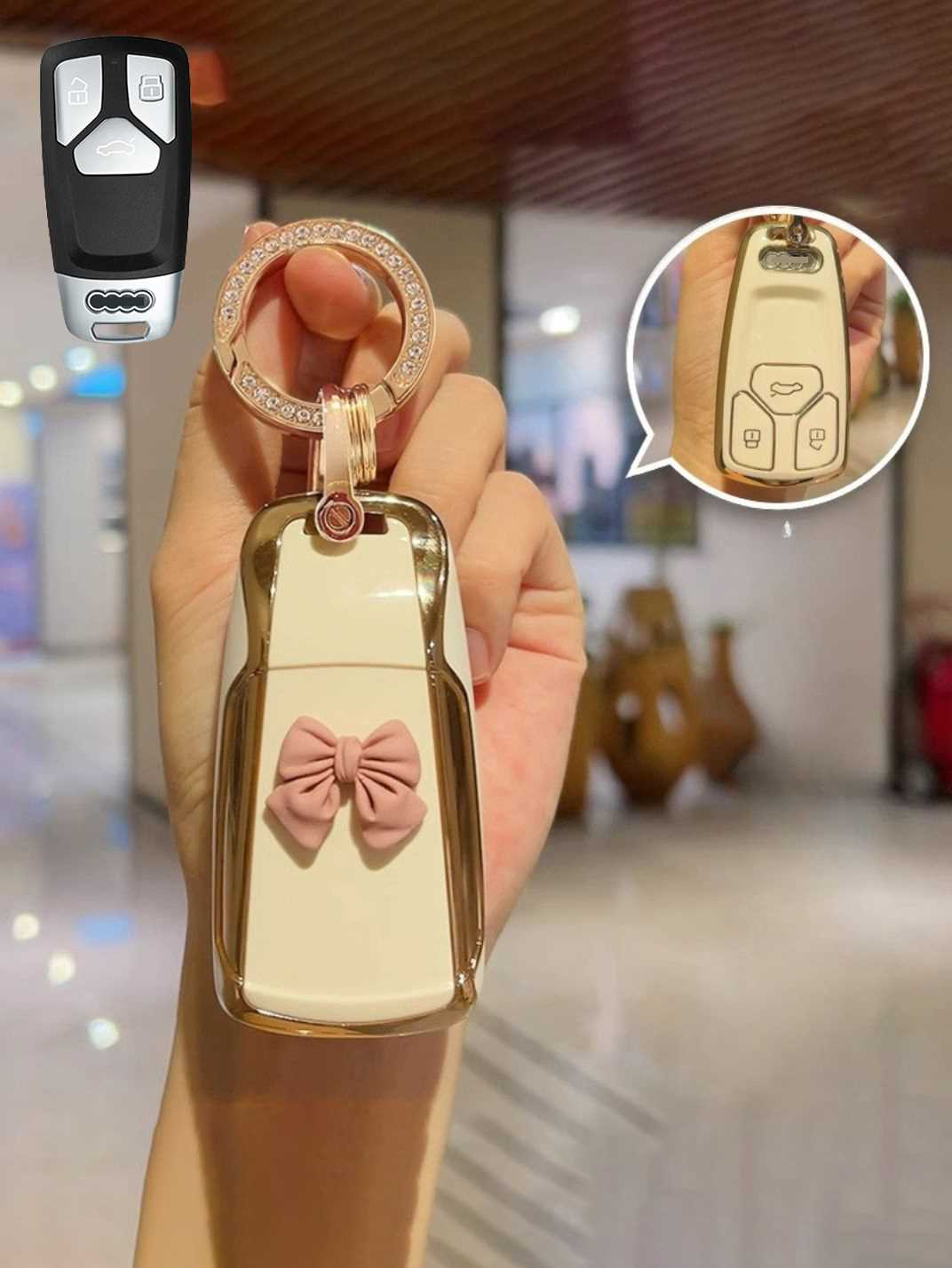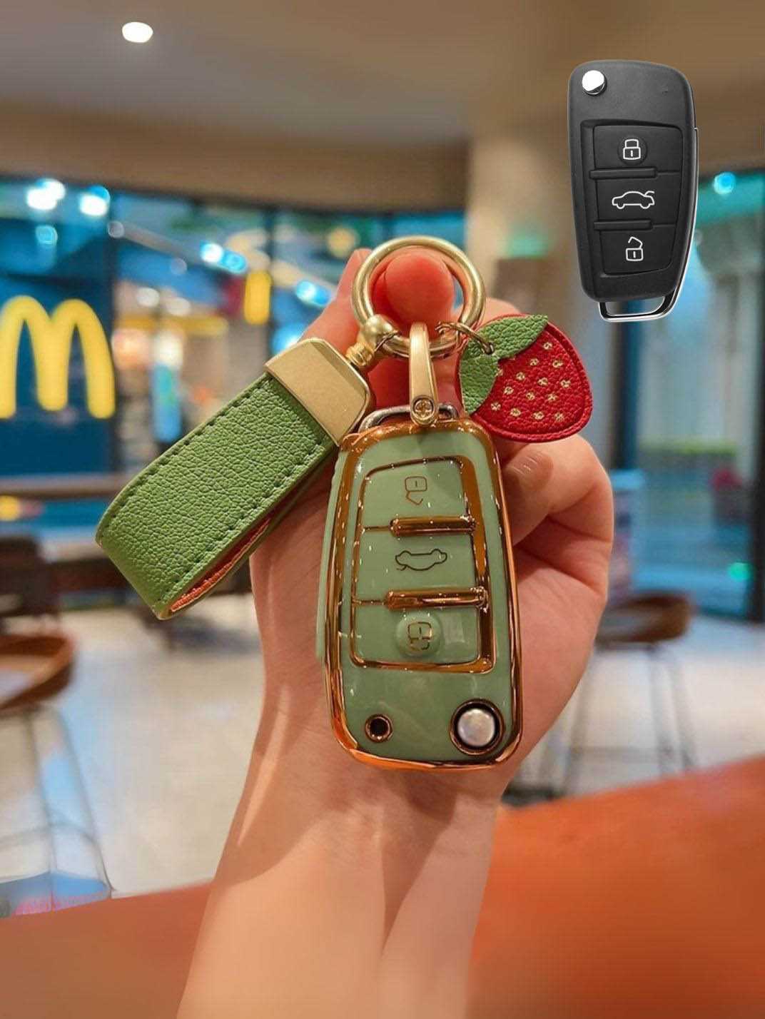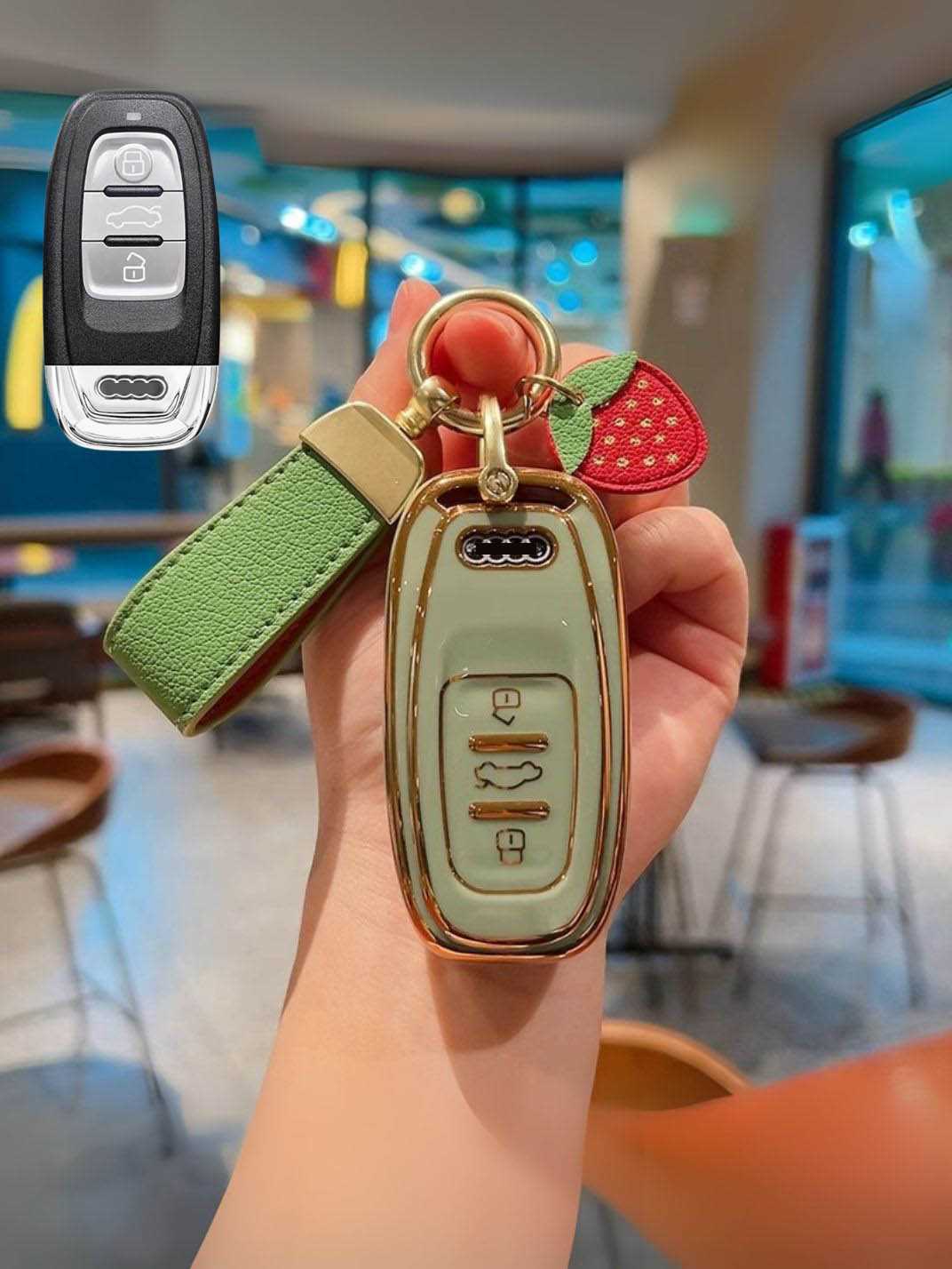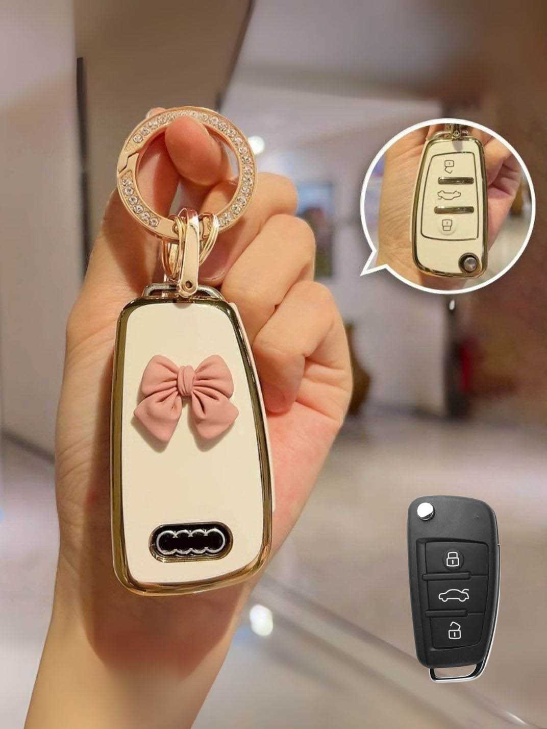Includes a matching strap or ring clip accessory that improves grip, prevents drops, and makes your Audi key easier and more comfortable to carry every day.