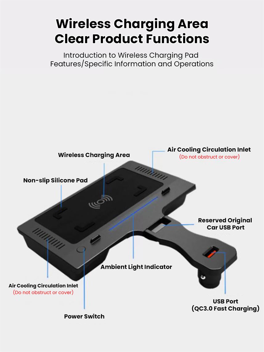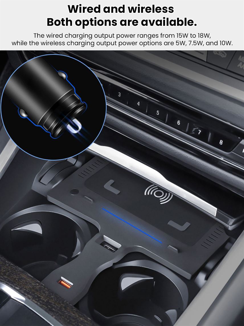 The Martoffes™ Wireless Charging Pad brings the convenience of wireless charging directly into your car. Designed to seamlessly integrate into your vehicle, it offers a simple and clutter-free charging solution while you're on the go. Say goodbye to tangled cables and enjoy effortless charging for your compatible devices. Experience the perfect blend of technology and automotive innovation with the Martoffes™ Wireless Charging Pad.