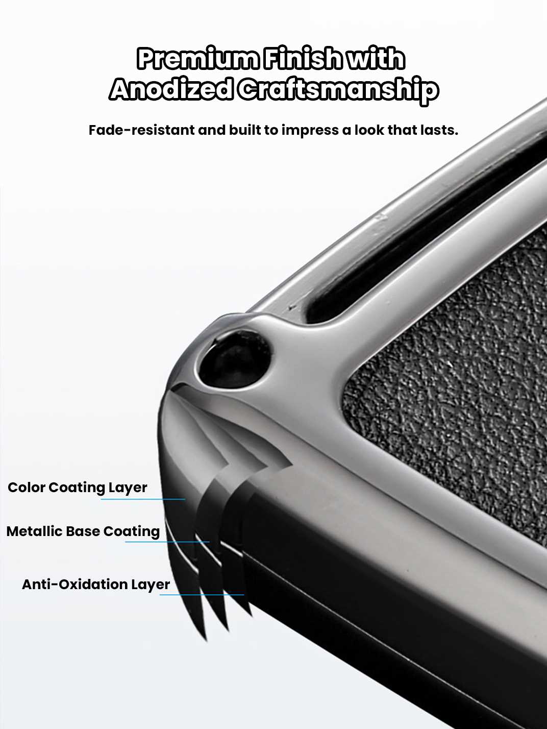 This detailed view reveals a multi-layer finish built to improve resistance against oxidation and surface wear, supporting long-lasting protection and consistent visual quality.