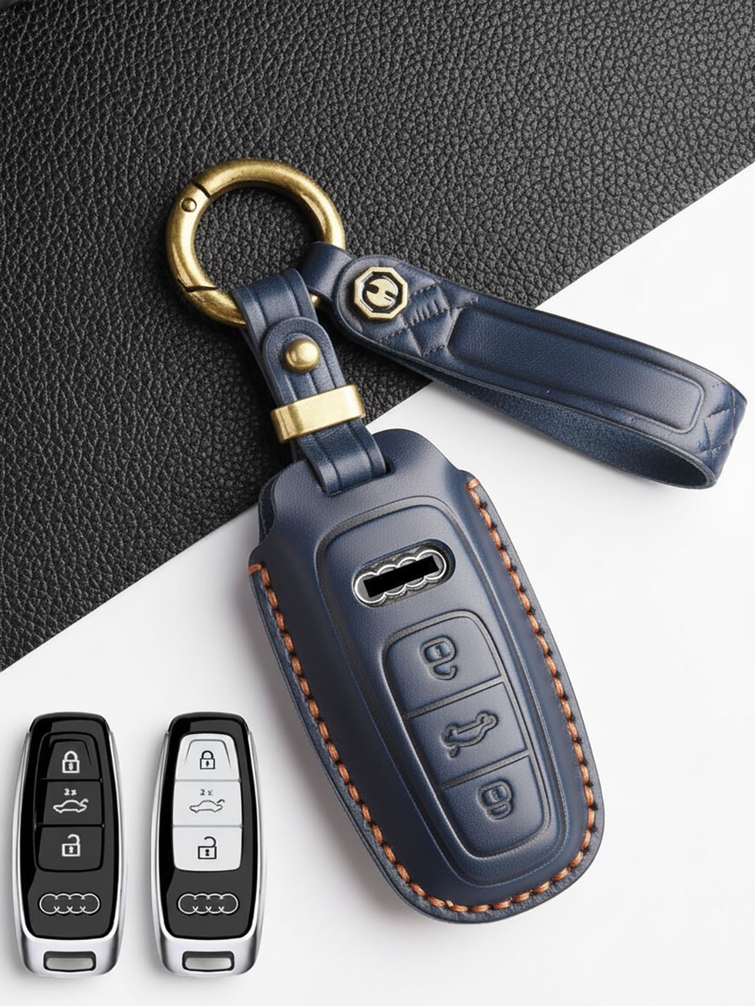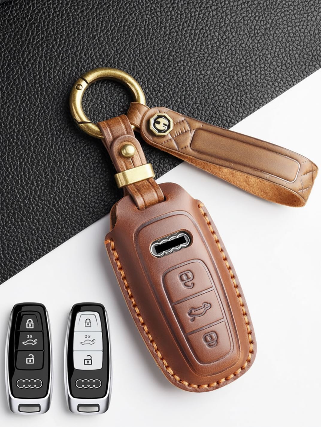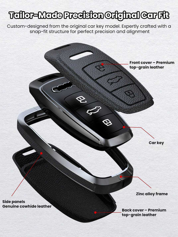 The reinforced leather body absorbs daily impact, preventing scratches, scuffs, and wear keeping your Audi key looking brand new.