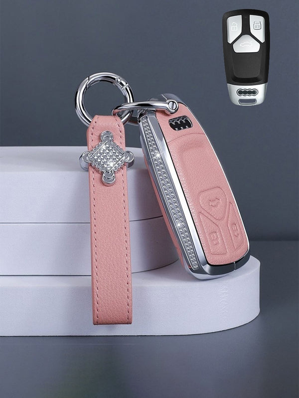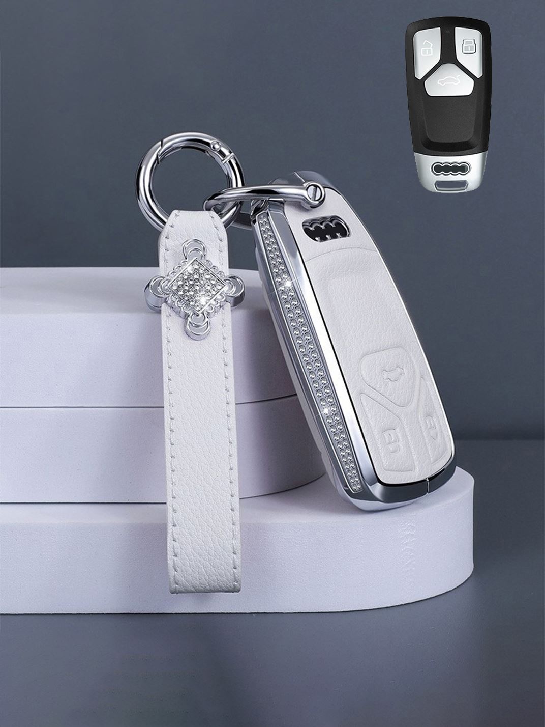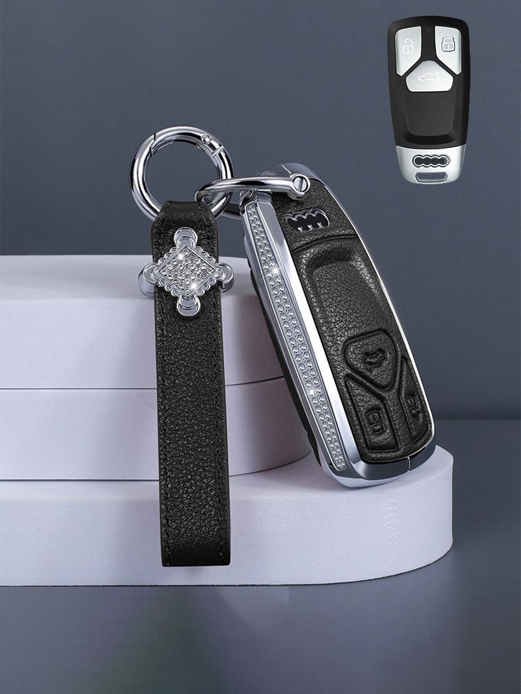 Featuring hand-set crystals, supple leather, and a polished metallic frame, this case brings a glamorous upgrade to your Audi key. A perfect blend of beauty and protection, designed for drivers who appreciate refined luxury.