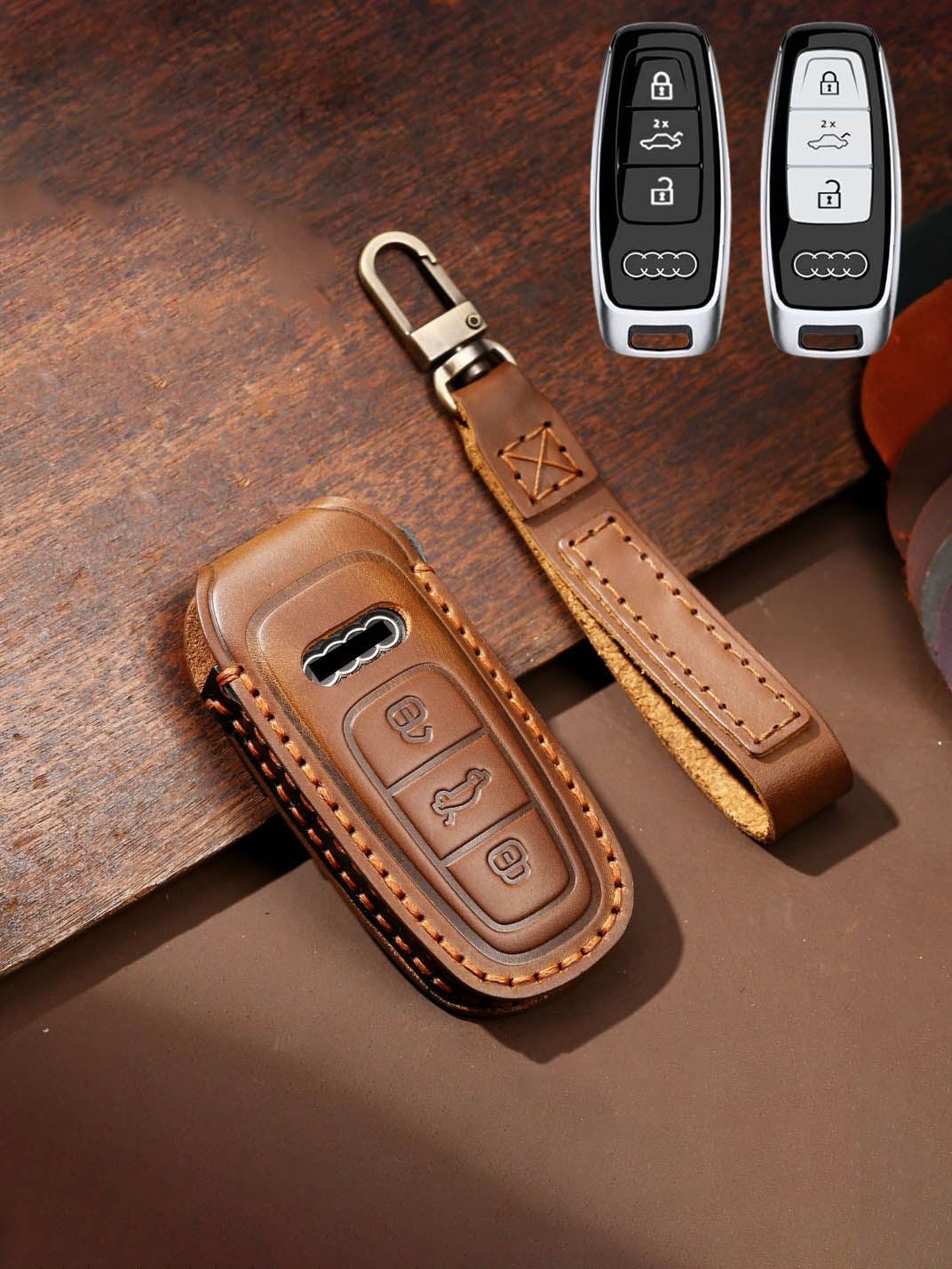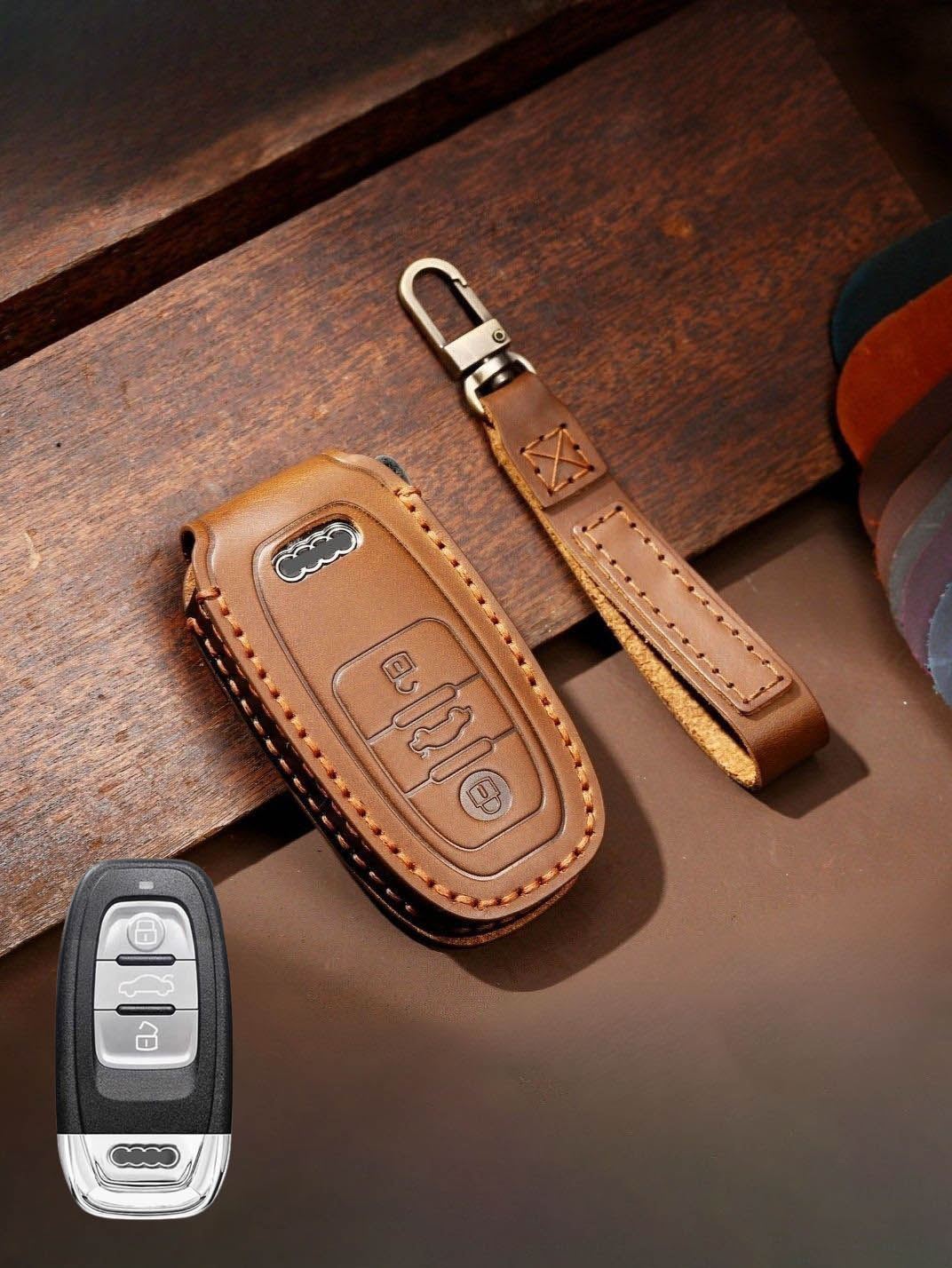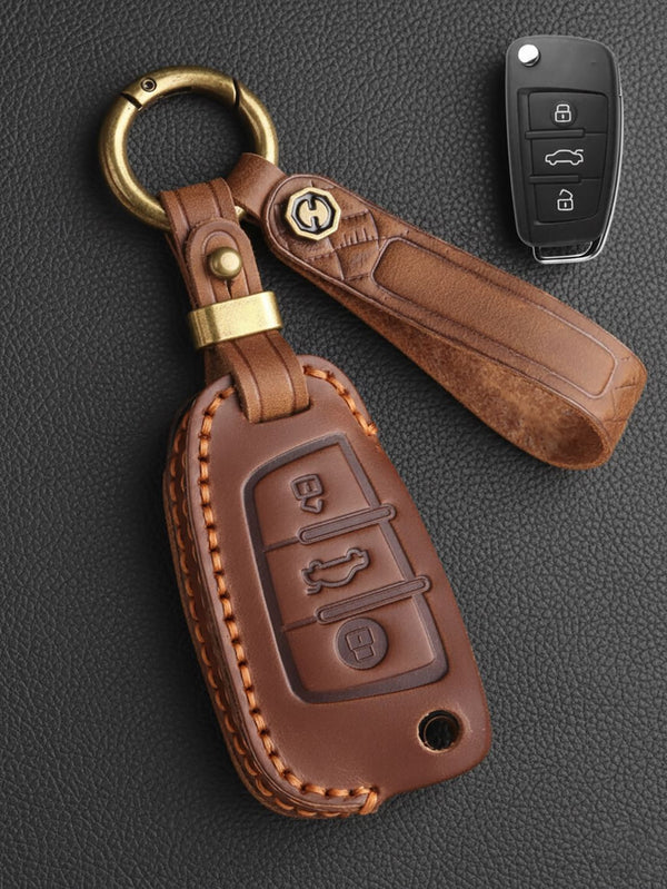 Hand-stitched from full-grain cowhide, this premium Audi key cover blends classic style with durable protection. Its rich texture, refined stitching, and precision fit elevate your key into a true everyday luxury. Made to age beautifully with every touch.