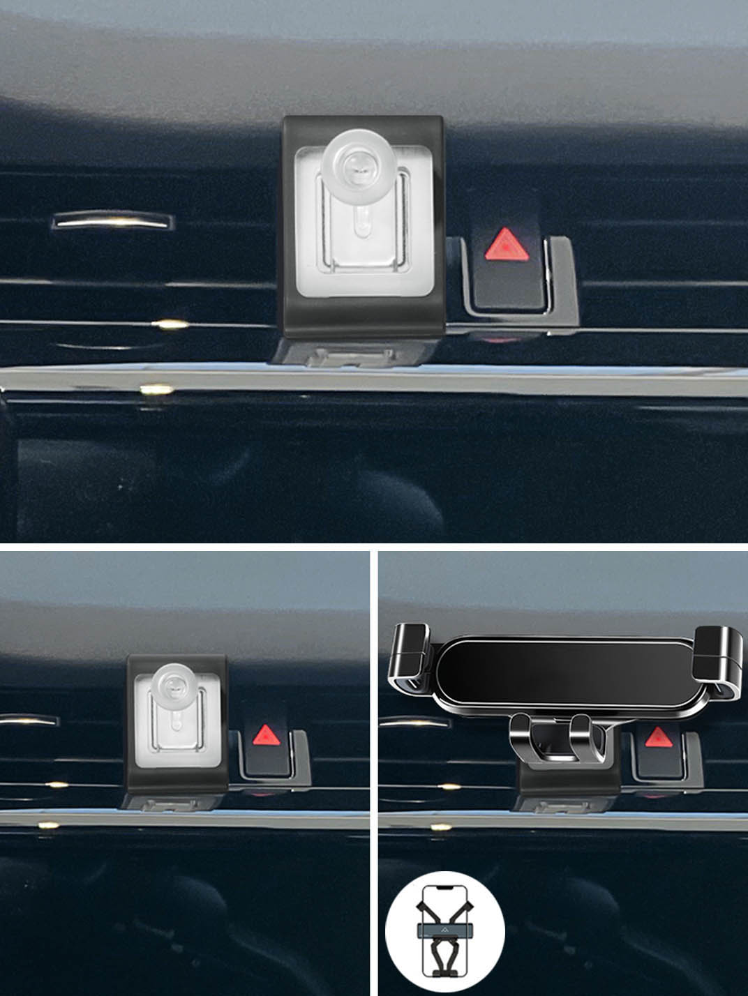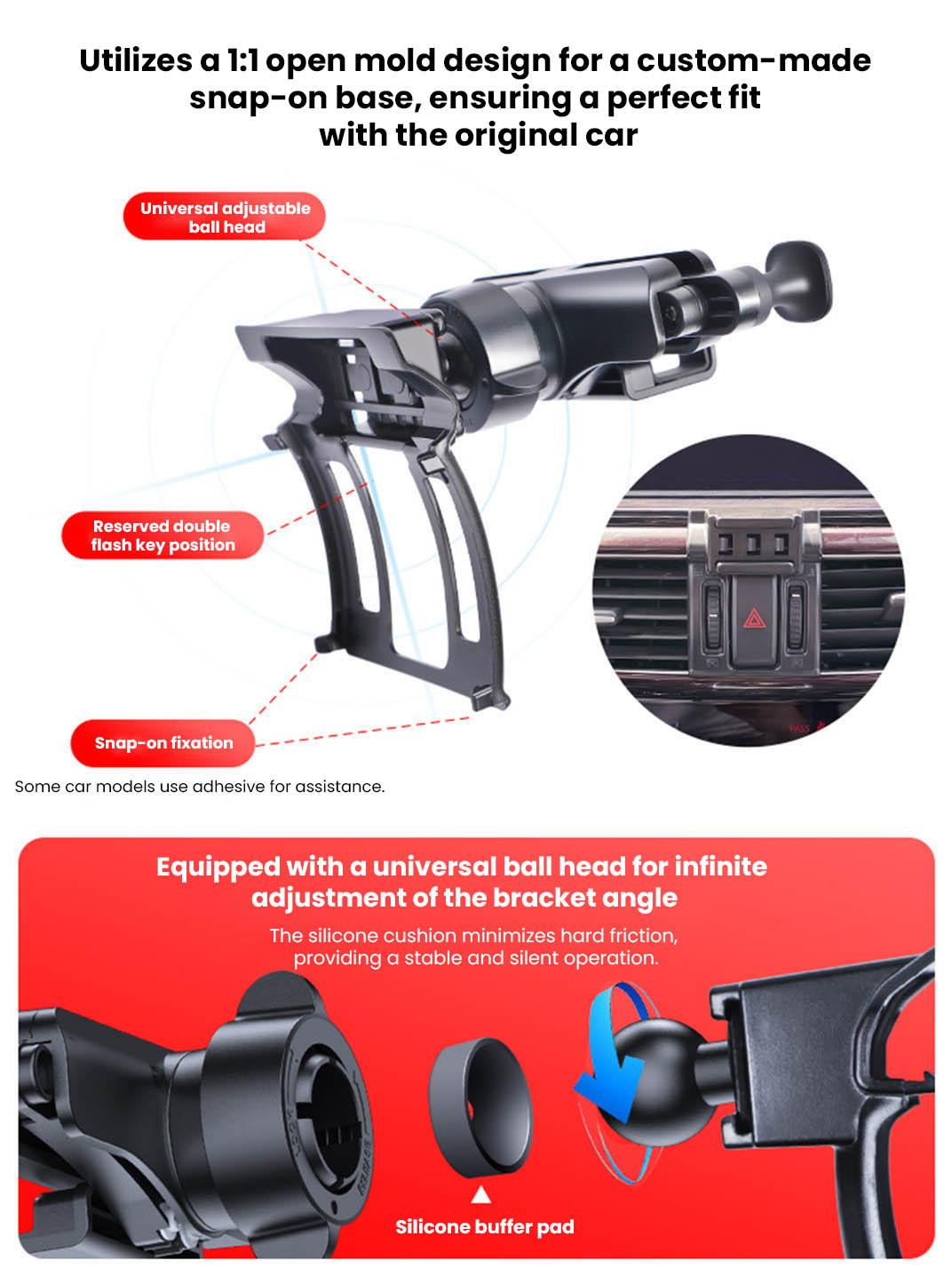 Fits okay but employs some sticky tape to get the job done. This sticky tape sticks directly to my high quality leather dashboard. It doesn't seem like a good solid hold. I expect it will come loose in time due to the elements of the extreme cold of the winter and/or the high heat of the summer. I'm also not too fond of the idea of this sticky adhesive tape on my high quality leather. I fear this will leave a residue.