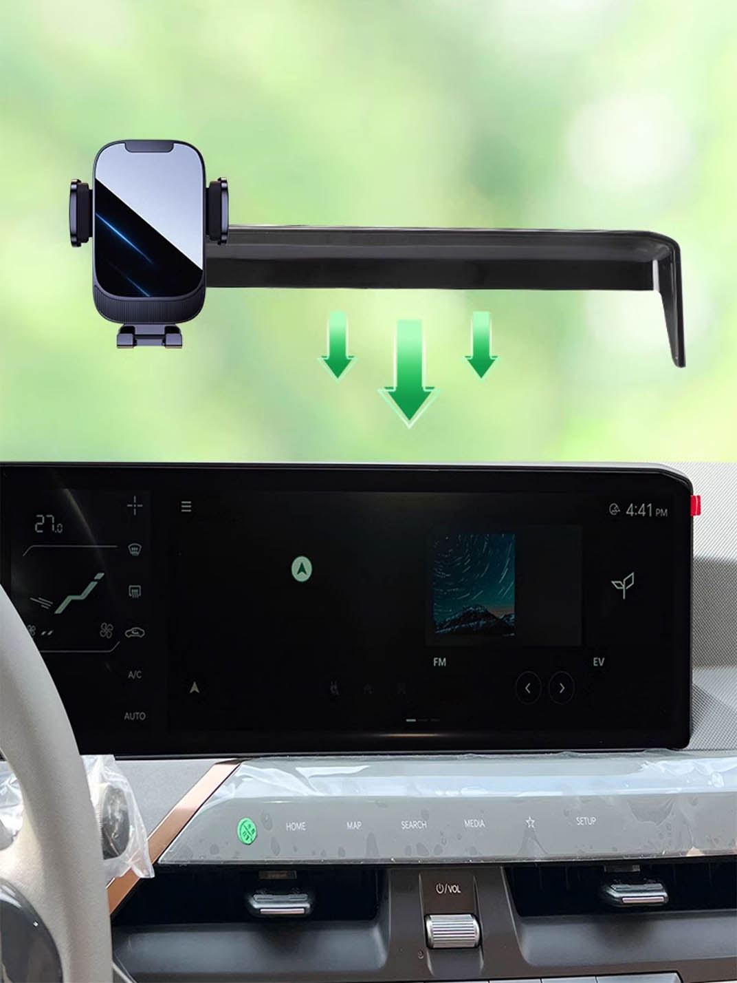 This phone holder fit my Kia EV6 perfectly. It places the phone in just the right location where it doesn’t block the screen or get hidden behind the steering wheel. I have not found anything that works as well.
